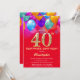Surprise 40th Birthday Red and Gold Balloons Invitation