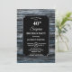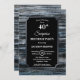 A rustic silver-bordered blue barn wood surprise 40th birthday invitation with the white text highlighted on a black background.