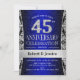 Surprise 45th Wedding Anniversary Party Invitation in sapphire blue, black and silver.
