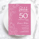 Floral Pink Surprise 50th Birthday Invitation. Minimalist modern feminine design features botanical accents and typography script font. Simple floral invite card perfect for a stylish female surprise bday celebration.