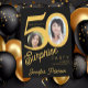 Surprise 50th birthday gold black photo invitation