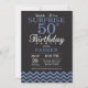 Surprise 50th Birthday Invitation with Black and Blue Chevron. Chalkboard. Adult Birthday. Man or Women Bday Invite. For further customisation, please click the "Customise it" button and use our design tool to modify this template.