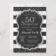 Surprise 50th Birthday Invitation for women or man. Black and Gold Birthday Party Invite. Silver Glitter Confetti. Black and White Stripes. Printable Digital. For further customisation, please click the "Customise it" button and use our design tool to modify this template.