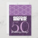 This design with its pretty purple colour scheme and lace pattern is part of the SURPRISE 50th Birthday Purple Lace and Damask Custom Invitations Collection, and is a fun yet elegant way to invite folks to a SURPRISE 50th birthday party celebration for a very special woman. All text is totally customisable.