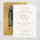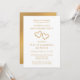 Create an elegant, faux gold script invitation with this surprise 50th wedding anniversary party invitation template. Add a photo to the back of the invitation for a lovely personalised arched photo invitation. Easily personalise this stylish party invitation by adding the couple's names, party date and time, location and other details you choose. All the modern, simple typography is editable. "Celebrating 50 Years of Marriage" can be customised for any anniversary year. I created the two golden gradient hearts with impressions of buds and leaves for a botanical feel. The unique golden tan gradient hearts are nestled next to each other for a romantic, lovely touch. See my golden 50th wedding anniversary collection for matching party table decorations and favours. Create a beautiful memorable party to honour a life long commitment of love.