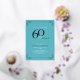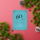This beautiful invitation features hand lettered calligraphy artfully presenting 'sixty' in luxurious hand lettering against a turquoise background, adorned with delicate swirls in the corners top and bottom in real silver foil, along with the name and the number 60. This image will have all your guests excitedly anticipating your fabulous sixtieth festivities!