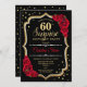 Surprise 60th Birthday Invitation. Feminine black, red design with faux glitter gold. Features red roses, script font and confetti. Perfect for an elegant birthday party. Can be personalized to show any age. Message me if you need further customization.