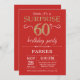 Surprise 60th Birthday Invitation with Red and Gold Glitter Background. Chalkboard. Adult Birthday. Men or Women Bday Invite. Any age. For further customisation, please click the "Customise it" button and use our design tool to modify this template.