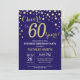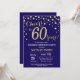 Surprise 60th Birthday Navy Blue and Gold Diamond Invitation