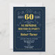 Elegant retro navy blue and yellow gold design. Cheers to 60 years! Can be customized to show any age!