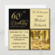 Your guests will love this personalised, gold and black surprise 60th birthday party invitation with champagne glasses, gold ribbon and tiny bubbles. This is a perfect milestone invitation. Simple yet festive, the elegant, chic, classic, classy surprise 60th birthday party invitation is is a fitting way to celebrate your guest of honour's sixtieth birthday with style that is traditional with a hint of modern, contemporary style. You easily personalise this surprise 60th birthday party invitation by filling in the given templates. 60th birthdays are meant to be celebrated. Why not make sure you send the perfect 60th birthday party invitation, perfect for men or women, to your guests. This birthday party invitation is perfect for the budget conscious host or hostess.
