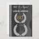An elegant custom surprise birthday invitation with the gold gilded number 60th on a black silk pattern decorated with white pearls. The number and the photo are framed with a laurel diamond pattern.