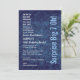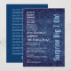 This modern design in navy damask and baby blue is an elegant way to invite your guests to a SURPRISE 70th birthday party. All text is totally customisable. You can change text colour for a different look. I recommend the premium ice hued metallic paper for a festive shimmer!
