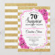 Feminine white, pink design with faux glitter gold. Features stripes, blush pink roses, script font and confetti. Perfect for an elegant birthday party. Can be personalized to show any age. Message me if you need further customization.