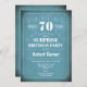 Surprise 70th birthday party invitation for men or women. Elegant invite card in light blue with retro typography script font. Cheers to 70 years! Can be customized to any age. Perfect for a milestone adult bday celebration.
