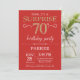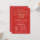 Surprise 70th Birthday Invitation with Red and Gold Glitter Background. Chalkboard. Adult Birthday. Men or Women Bday Invite. Any age. For further customisation, please click the "Customise it" button and use our design tool to modify this template.