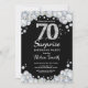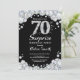 Surprise 70th Birthday Invitation. Silver Rhinestone Diamond Chalkboard Background. Elegant Birthday Bash invite. Black and White. Adult Birthday. Women Birthday. Men Birthday. For further customisation, please click the "Customise it" button and use our design tool to modify this template.