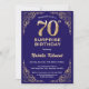 Surprise 70th Birthday Navy Blue and Gold Glitter Invitation