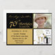 Your guests and the guest of honour will love this surprise 70th birthday party invitation. Your guests will love this personalised, gold and black surprise 70th birthday party photo invitation with champagne glasses, gold ribbon and tiny bubbles. Simple yet festive, the elegant, chic, classic, classy surprise 70th birthday party invitation is is a fitting way to celebrate your guest of honour's seventieth birthday with style that is traditional with a hint of modern, contemporary style. You easily personalise this horizontal, 70th birthday party photo invitation by filling in the given templates. 70th birthdays are meant to be celebrated. Why not make sure you send the perfect 70th birthday party invitation, perfect for men or women, to your guests Easily customise the invitations with your own information and add a picture and the invite is ready to go