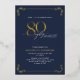 This beautiful invitation features hand lettered calligraphy artfully presenting 'eighty' in luxurious hand lettering against a blue background, adorned with delicate swirls in the corners top and bottom in real gold foil, along with the name and the number 80. This image will have all your guests excitedly anticipating your fabulous eightieth festivities!