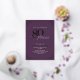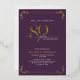 This beautiful invitation features hand lettered calligraphy artfully presenting 'eighty' in luxurious hand lettering against a purple background, adorned with delicate swirls in the corners top and bottom in real gold foil, along with the name and the number 80. This image will have all your guests excitedly anticipating your fabulous eightieth festivities!