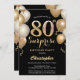 Surprise 80th Birthday Black and Gold Balloons Invitation