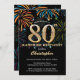 Surprise 80th Birthday Black Gold Rainbow Firework Invitation