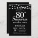 Surprise 80th Birthday Invitation with String Lights. Black Background. Men or Women Birthday. 13th 15th 16th 18th 20th 21st 30th 40th 50th 60th 70th 80th 90th 100th, Any age. For further customisation, please click the "Customise it" button and use our design tool to modify this template.