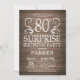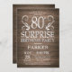 Surprise 80th Birthday Invitation Rustic Wood Background. 15th 16th 18th 20th 21st 30th 40th 50th 60th 70th 80th 90th 100th, Any age. Adult Birthday. Man Male Birthday Party. For further customisation, please click the "Customise it" button and use our design tool to modify this template.
