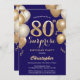 Surprise 80th Birthday Navy Blue and Gold Balloons Invitation