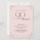 This beautiful invitation features hand lettered calligraphy artfully presenting 'ninety' in luxurious hand lettering against a blush pink background, adorned with delicate pink swirls in the corners top and bottom. This image will have all your guests excitedly anticipating your fabulous ninetieth festivities!