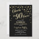 Elegant design with faux glitter gold and black. Features script font and confetti. Cheers to 90 Years! Message me if you need a custom age.