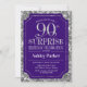 Surprise 90th Birthday Party - Silver Purple Invitation