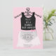 Tutu ballerina pink baby shower invitation which can be personalised with the inclusion of your baby shower details. The design features a pink skirt with the traditional black leotard with a pink bow. The back of the invitation has a repeat pattern of small pink diamond shapes against a white background. This invitation could be used for any ballet or ballerina themed surprise baby shower invitatation for a baby girl.