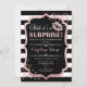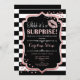 Elegant black white design with faux glitter rose gold. Features pink lips kiss, black white stripes, confetti and script font. Perfect for an elegant birthday party. Can be customized into any age! Message me if you need further customization.