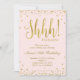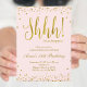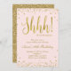 Faux gold confetti splatters blush pink party invitation with sparkle design for surprise birthday party. Perfect for modern birthday.