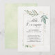 Delicate flowers and greenery provide a lovely backdrop for your surprise birthday party invitation. Blush peach, soft yellow, and sage green watercolor flowers on a solid white background contrast nicely with the green watercolors on the reverse side. On the front, the gold (faux glitter) in framing the flowers and the text provides a pop of elegance.