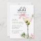 Elegant and modern surprise birthday invitation features watercolor martini glass with pink bow paired with a modern and script typography.