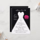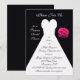 Looking for a surprise bridal shower invitation? This great surprise bridal shower invitation features a white wedding gown on a black background with a rose bouquet to the side. The invitation reads "Please Join Us" at the top with the words "for a Surprise Bridal Shower" to the left of the bridal gown. You can personalise the design with all your surprise shower details inside the bridal gown. At the bottom of the bridal gown is another reminder of the surprise nature of the shower with the words "Please remember it is a surprise!" Copyright henishouseofpaper