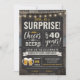 Surprise Cheers and Beers 40th Birthday Invitation featuring chalk board and lettering with customise-able age.