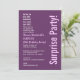 This modern design in magenta purple and pink is an elegant way to invite your guests to a SURPRISE custom year birthday party. All text is totally customisable. You can change the background colour or the text colour for a different look. Although this design is featured on a basic paper, I recommend the linen finish paper, which gives your invitation a more elegant touch, or the premium ice hued metallic paper, which will give your invitations a festive shimmer and shine.