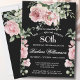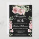 Start this special SURPRISE 80th birthday celebration in a elegant style with this beautifully hand painted invitation with colorful yet gentle flowers -- leading with blush pink roses and eucalyptus greenery, yet adding interesting other touches of color striking against an all black background.. All of the text can be personalized for your party including the guest of honor's age. If you have any special requests or require design assistance, just send a chat and we'll be delighted to assist.
