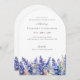 Create a beautiful summer birthday theme for your July celebration around July's Birth Flower - Blue Larkspur. Larkspur is also known as Delphinium. The modern arch-shaped paper is one of the hottest invitation trends.