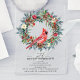 An elegant red cardinal nestled in a winter greenery wreath invites guests to your winter or Christmas birthday party. The watercolor design features a beautiful cardinal and a pine wreath decorated with red flowers and berries along with pine cones.