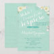 Surprise Party Invitation Cards for a lady with vintage aqua background and off-white flowers.