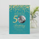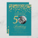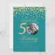 SURPRISE Photo 50 Birthday Gold Confetti Turquoise Invitation