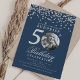 SURPRISE Photo 50th Birthday Silver Confetti Navy Invitation