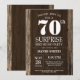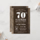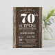 Surprise Rustic 70th Birthday Invitation with Rustic Wood Background. Vintage Retro Country. Adult Birthday. Male Men or Women Birthday. Kids Boy or Girl Lady Teen Teenage Bday Invite. 13th 15th 16th 18th 20th 21st 30th 40th 50th 60th 70th 80th 90th 100th. Any Age. For further customisation, please click the "Customise it" button and use our design tool to modify this template.