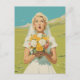 This charming illustration portrays a radiant bride holding a vibrant bouquet, her expression filled with joyful surprise. Set in a sunlit meadow with rolling green hills, the artwork blends vintage poster aesthetics with romantic storytelling. Soft brush textures and fresh colors evoke love, spontaneity, and happiness, making it perfect for wedding stationery, prints, or editorial design.