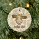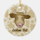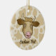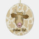 Surprised Cow's head illustration. Seamless cow pattern background. Custom text on both sides.